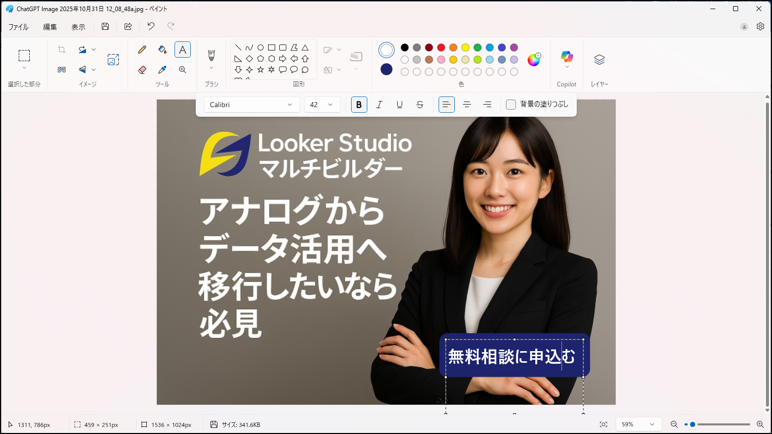 細部の修正にはCanvaを使う方法がよく紹介されていますが、今回は、初心者でも簡単に扱うことができるWindowsのペイントを使用しました。