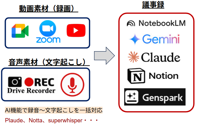 意外に知られていないのが、YouTubeの文字起こし機能を活用することです。会議録画をYouTubeに非公開(社内用のため)でアップロードして、YouTube自動生成字幕をコピーして、NotebookLMに保存することで整理されて検索可能な記録として活用できます。