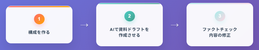 AIを使った効率的なスライド作成の流れは以下の通りです。