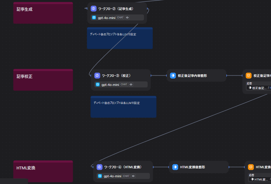 さらに、生成されたテキストは、WordPressにそのまま入稿できるHTMLコードに自動変換することも可能です。記事の構成や内容のたたき台をDifyが短時間で用意し、その後、人が必要に応じて加筆・修正を加えることで、記事作成にかかる時間と工数を大幅に削減できます。