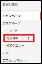 メニューから「対象外キーワード」を選択