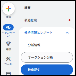 Google広告運用画面「分析情報とレポート」内「検索語句」をクリック