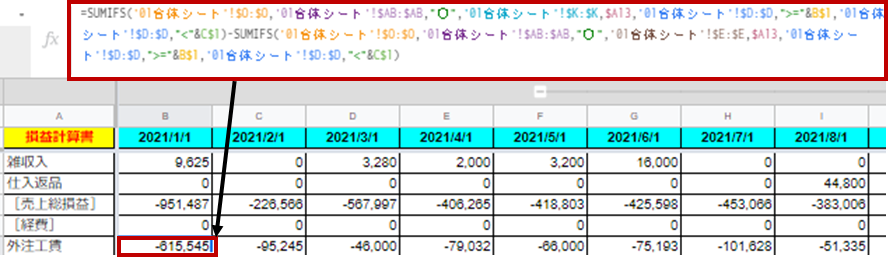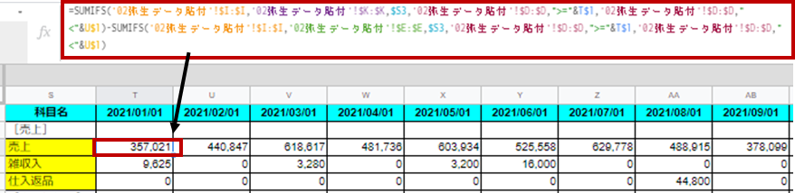 A-2.スプレッドシート内で数式を用いて集計したBS,PLデータ