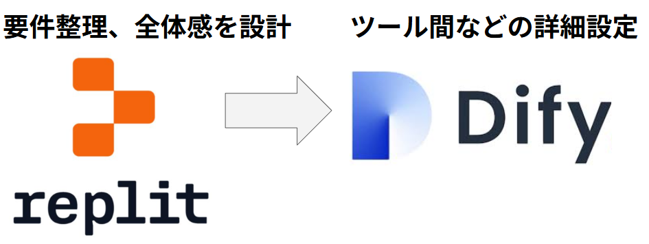 これまでのアプリの開発フローは、まずReplitで要件整理とプロトタイプを作成して、その後Difyで詳細部分を実装していく流れでした。これだけでもAIがなかった時代に比べて、格段に時間とコスト面で有利になっていきました。