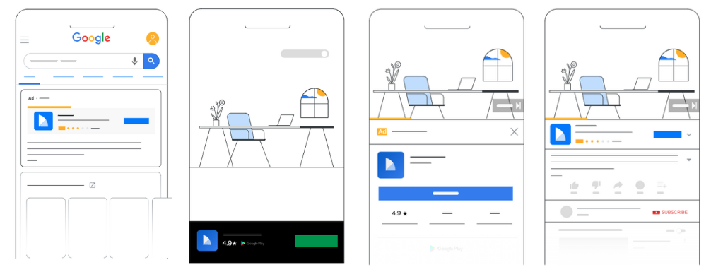 検索広告、ディスプレイ広告、YouTube広告、さらにはPlayストア内の広告など、さまざまなチャネルに対して一括で配信設定ができるのが最大の特徴といえます。