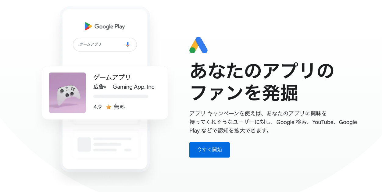 「Googleアプリ広告」は検索結果だけでなく、YouTubeやPlayストアなど複数のチャネルを横断して配信でき、インストール単価を抑えながら継続的にユーザーを獲得できる点が魅力です。
