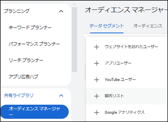 一覧にあればそのツールは顧客データベースやCRMとしての機能を持っていて、蓄積された顧客情報をGoogle広告に自動的に連携できます。