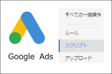 Google広告の画面を開き、該当アカウント内で上部の「ツール」→「スクリプト」へ進みます。そして、下記のようにGoogle Adsスクリプトを設定して、出力します。