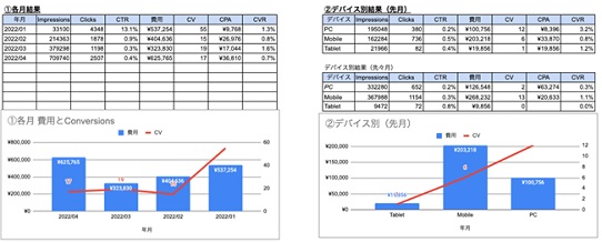 広告キャンペーンのパフォーマンスデータを見ながら、その後の運用判断を決定します。クリック数、クリック単価、コンバージョン率などの指標を定期的にチェックして配分を見直すことで、その後の結果も大きく変わってきます。