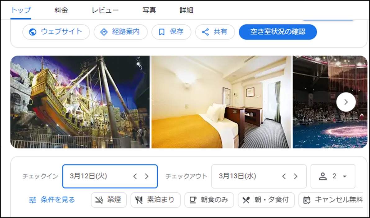 ユーザーが旅行先やホテルを検索したときに、最初の目に入る情報として宿泊施設を直接アピールできて多くの人に知ってもらえます。