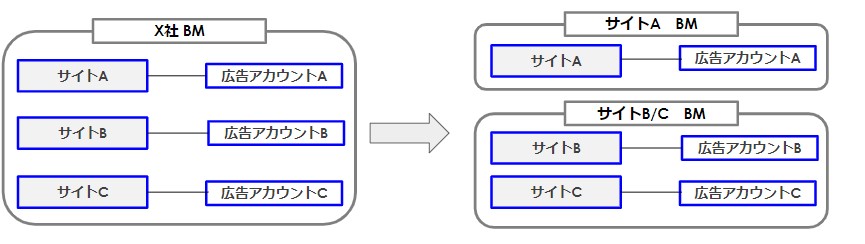 そのため、複数の広告アカウントを持つ代理店などの企業では、ビジネスマネージャーを複数(2つや3つ)に分けて管理することが必要です。