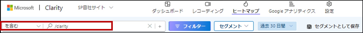 特定のページのヒートマップだけ見たい場合は、上部の「ヒートマップ」からページ一覧が表示されるのでそこで「フィルター」を使って絞り込めば、そのページのヒートマップだけ見ることができます。