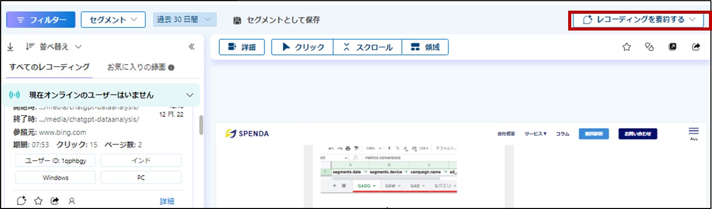 特定のヒートマップをクリックして「レコーディングを要約する」を押します。