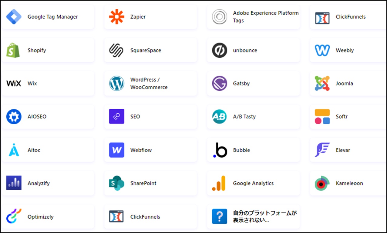 多くの利用者が使う統合先のツールは「Google Analytics」「Google Tag Manager」ですが、その他にも多くのツールをClarityと直接連携できます。ECサイト向けに「Shopify」やA/Bテストツール「A/B Tasty」など目的に合わせて自社で利用するツールと統合することで、より細かく精度の高い改善施策を実行できるようになります。