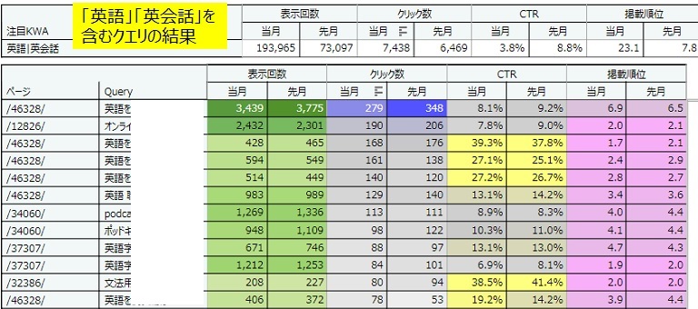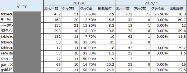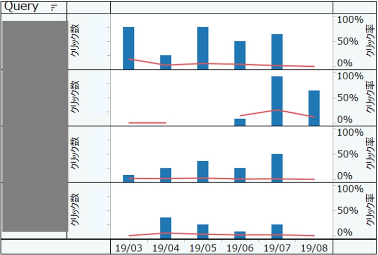 クエリ(Query)別の結果を月別に並べた結果です。