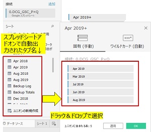 次に該当月のデータソースをドラック&ドロップで選択して、結合ファイルを作成します。