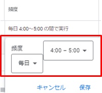 最後に「スクリプト」画面に戻り「頻度」をクリックすれば、「毎日4:00-5:00」にデータが自動更新するように設定できます。
