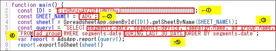 上記は広告グループだけを設定したものですが、1つのスクリプトで複数のレポートを出力することも可能です。