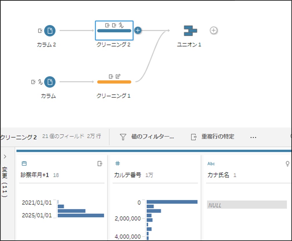クリニックの診察記録で、「月ごとの1ユーザー別の顧客分類のステージをカウントしたい。しかし、診察記録はデータソースに1回しか残らないのでTableau Desktopだけでは毎月の推移が記録に残らない」という問題が出てきました。そこで、Tableau Prep Builderを使って「診察年月」だけでなく「診察年月+1か月」「診察年月+2か月」・・・という指標を作成しました。