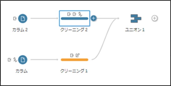 そしてデータを成形する段階で、下記のようにフロー図で確認しながら各ステップを編集していきます。データをどのような順番でどのような操作を行ったか、ここで一覧で見ることができます。各ステップの効果はリアルタイムでプレビューされ、データの変化がすぐに把握できます。