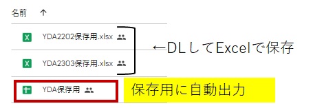 Yahooディスプレイなど、データによっては「今月」「先月」など1年で期間指定ができない場合もあります。その場合はバックアップ用のスプレッドシートも用意して、出力された内容を月ごとにダウンロードして保存するようにしています。