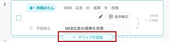 2つ目のシーンを作成するときは、下部にカーソルを合わせて「クリップを追加」をクリックします。