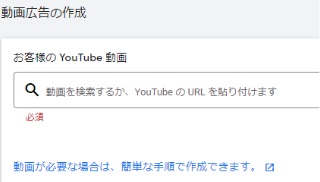 YouTubeの広告画面でのアップロード