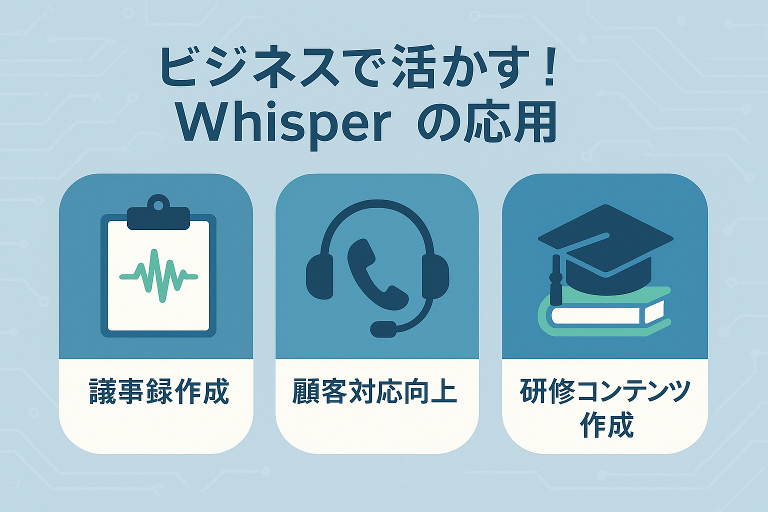 Whisperの応用範囲は非常に広く、ビジネスから日常まで、さまざまなシーンで活用できます。例えば、議事録作成にWhisperを活用することで、時間と労力を大幅に削減してより重要な業務に集中できます。