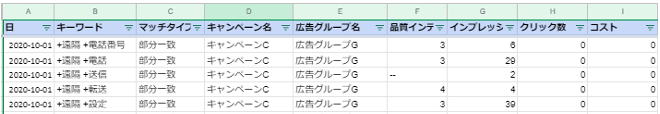 まずは、全体、キャンペーン、広告グループ別の順に並べます。