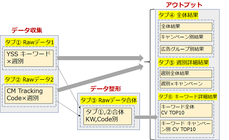 まずはYahoo! スポンサードサーチ(YSS)のrawデータを用意します。